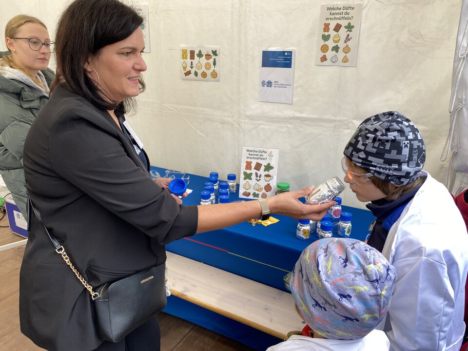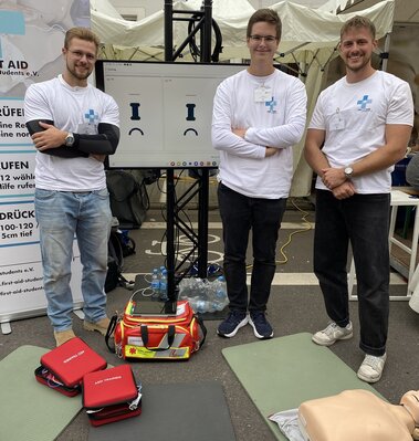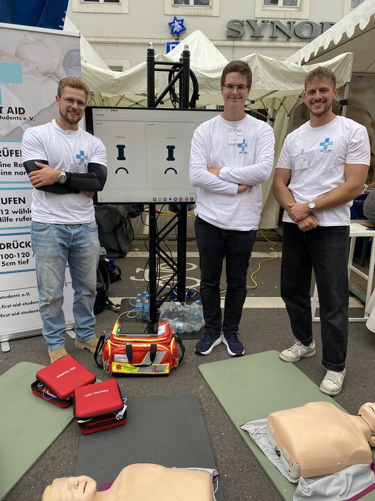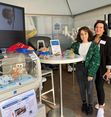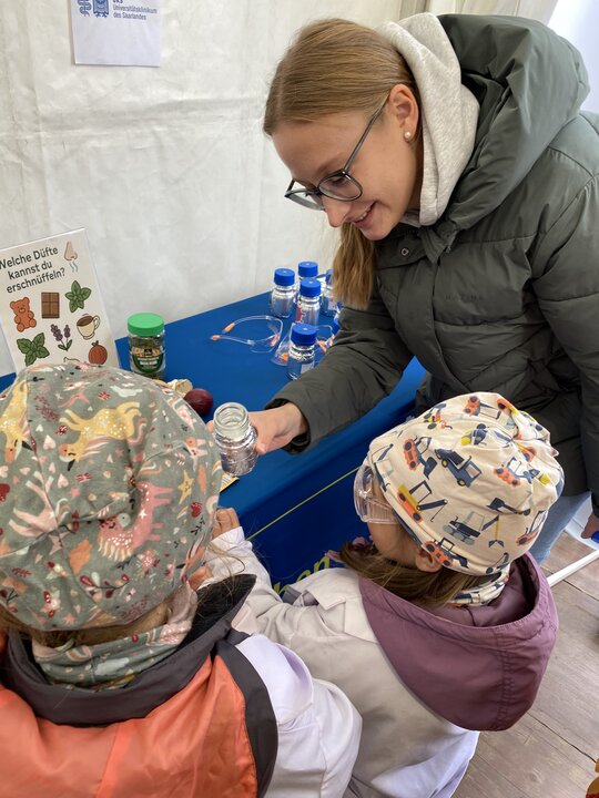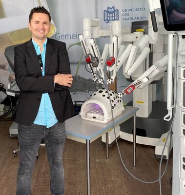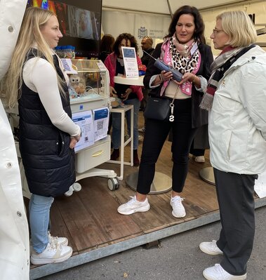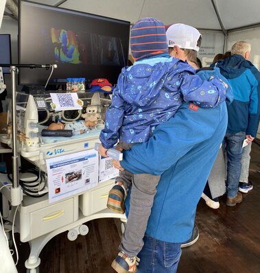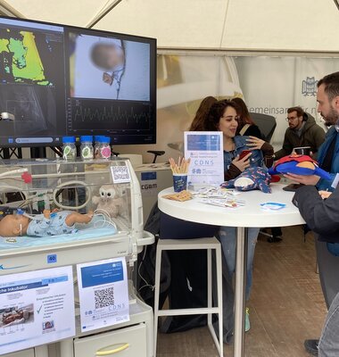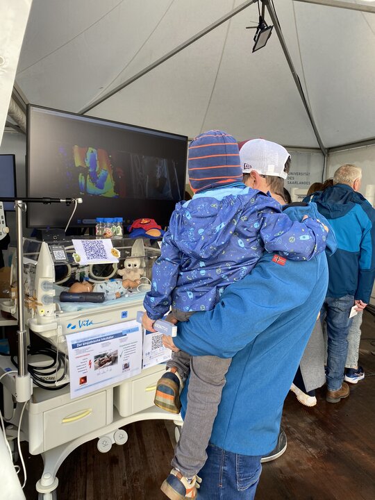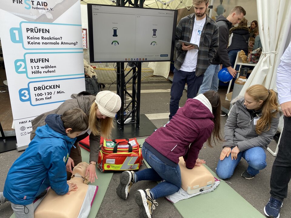 Das UKS war vom 2. bis 4. Oktober 2025 beim großen Bürgerfest zum Tag der Deutschen Einheit in Saarbrücken mit dabei. Organisiert von der Universität des Saarlandes gab es einen gemeinschaftlichen Stand auf der „Zukunft durch Wandel-Meile“ und Mitmach-Angebote für Kinder auf der „Mini MINT-Meile“. An beiden Stellen waren verteilt über die drei Veranstaltungstage Kolleginnen und Kollegen des UKS und der Medizinischen Fakultät mit spannenden Themen zu finden, u.a. waren das: Unsere Kliniken für Urologie, Allgemeinchirurgie und Frauenheilkunde, die den Operations-Roboter daVinci® ausgestellt haben – jeder konnte vorbeikommen und sich selbst als Operateurin oder Operateur ausprobieren. Auch das UKS-Schulzentrum war vor Ort und hat über die Ausbildungsangebote am UKS informiert. Unsere Kinderklinik präsentierte das Forschungsprojekt „empathischer Inkubator“. Die Klinik für Kinder- und Jugendpsychiatrie bot ein Trainingsspiel gegen Mobbing. Das Centrum für geschlechtsspezifische Biologie und Medizin (CGBM) stellte sich vor und der Verein FIRST AID students e.V. zeigte den jungen Besucherinnen und Besuchern, wie man spielend leicht Reanimation lernt.