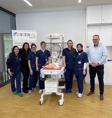 Bereits seit dem Jahr 2022 bestehen auf Initiative von Dr. Sarah Ruffing und Dr. Theresa Faas Reanimationstrainings für den Umgang mit Schul- und Kleinkindern. Das Angebot beinhaltet Kurseinheiten zu Basic und Advanced Life Support im Kindesalter und erfreut sich von Jahr zu Jahr immer größerer Beliebtheit. Im Jahr 2024 wurde das Portfolio um spezielle Neugeborenentrainings erweitert, die bisher auf Behandlungsliegen stattfanden. Dank der neuen Rea-Einheit können diese nun noch praxisnaher gestaltet werden.