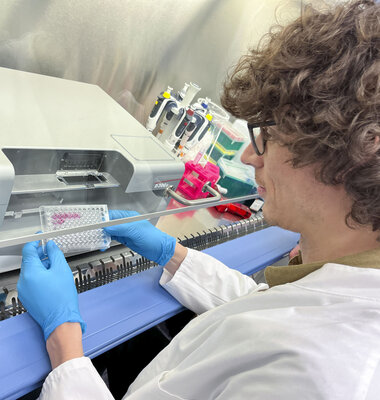 In dem nun am UKS starteten Verfahren wird eine Vielzahl von potenziellen Wirkstoffen gleichzeitig getestet, um deren Auswirkungen auf bestimmte Krankheitsmodelle oder Zelllinien zu bewerten. Die Untersuchung der Wirkstoffe in dem den Patientinnen und Patienten zuvor entnommenen Tumorgewebe erfolgt weitgehend automatisiert auf einer Zellplatte an einem zum Pipettierautomaten modifizierten Tintenstrahldrucker. Bis zu 750 Medikamente, die bereits zugelassen sind oder sich derzeit in der klinischen Erprobung befinden, können an den jeweiligen Proben parallel getestet werden. Die Tests generieren in kurzer Zeit große Datenmengen und helfen so, vielversprechende Ansätze für weitere klinische Studien zu identifizieren. „Untersucht wird vor allem die Wirkung von Medikamenten, die bereits bei Patientinnen und Patienten mit Krebserkrankungen etabliert sind. Es ist beispielsweise denkbar, dass über die Testung ein bislang nur in der Behandlung von Brustkrebs bei Erwachsenen erfolgreich eingesetztes Medikament vielversprechende Wirkung für die Behandlung eines kindlichen Hirntumors zeigt“, sagt Prof. Remke.