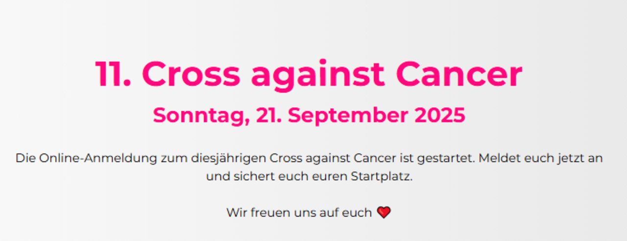 Einzel-Anmeldung zum Cross against Cancer im UKS-Team bitte bis spätestens 20. August beim Betrieblichen Gesundheitsmanagement (BGM)!